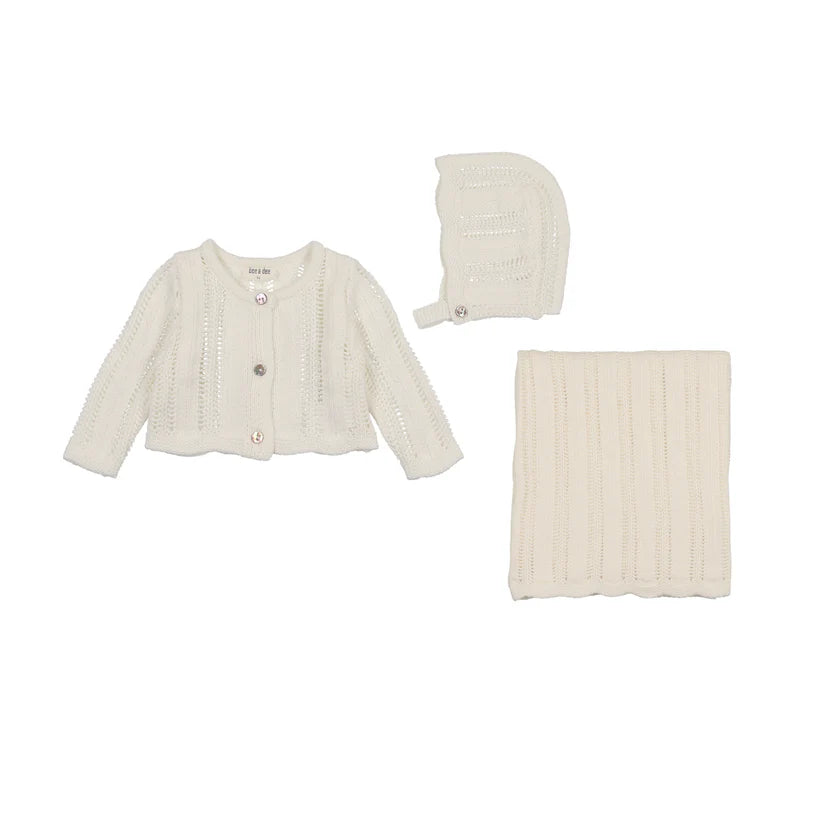 Bee & Dee Chalk White Girls Crochette Velour Blanket Set