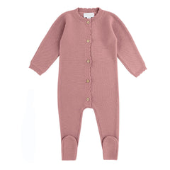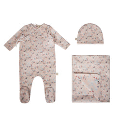 Mema Knits Rose Smoke Melange French Terry Top Stitched Footie + Beanie