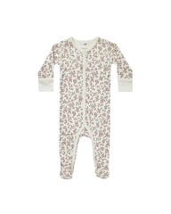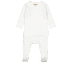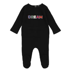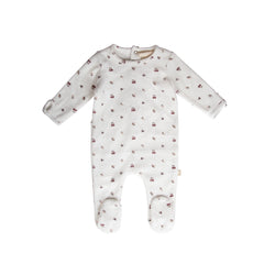 Mema Knits Ivory / Rosewood Embroidery French Terry Embroidered Bebe Footie + Beanie