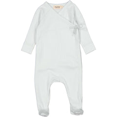 Mema Knits Ivory Pointelle Scalloped Edge Footie + Bonnet