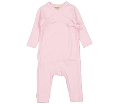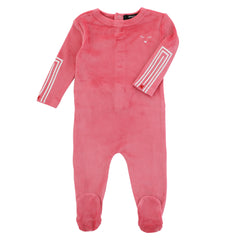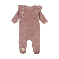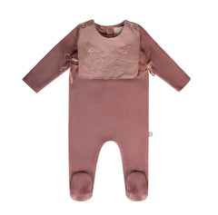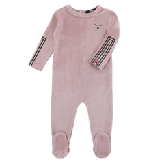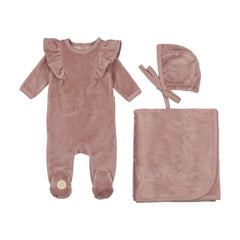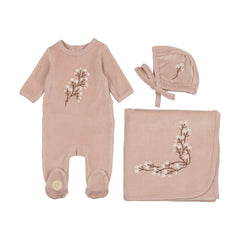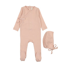 Mema Knits Pale Pink Velour Mock Wrap Footie + Bonnet