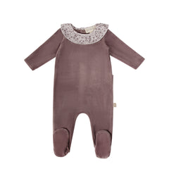Mema Knits Mauve Floral Print Printed Pointelle Footie + Bonnet
