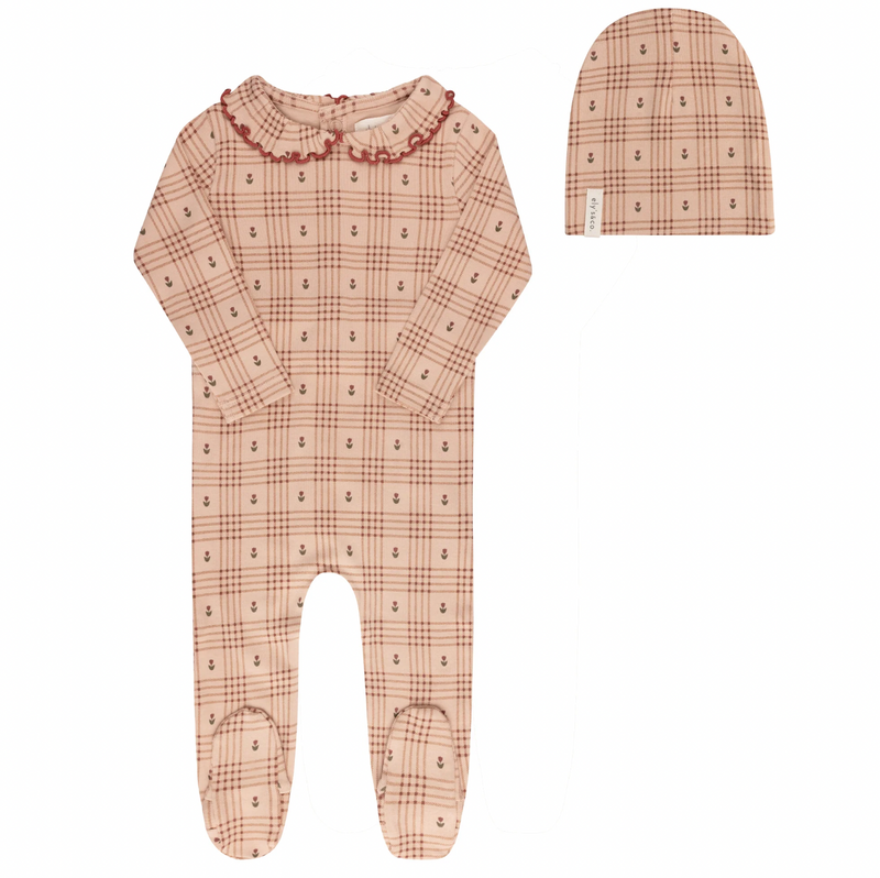 Ely's & Co. Pink Footie + Beanie Floral Plaid Collection