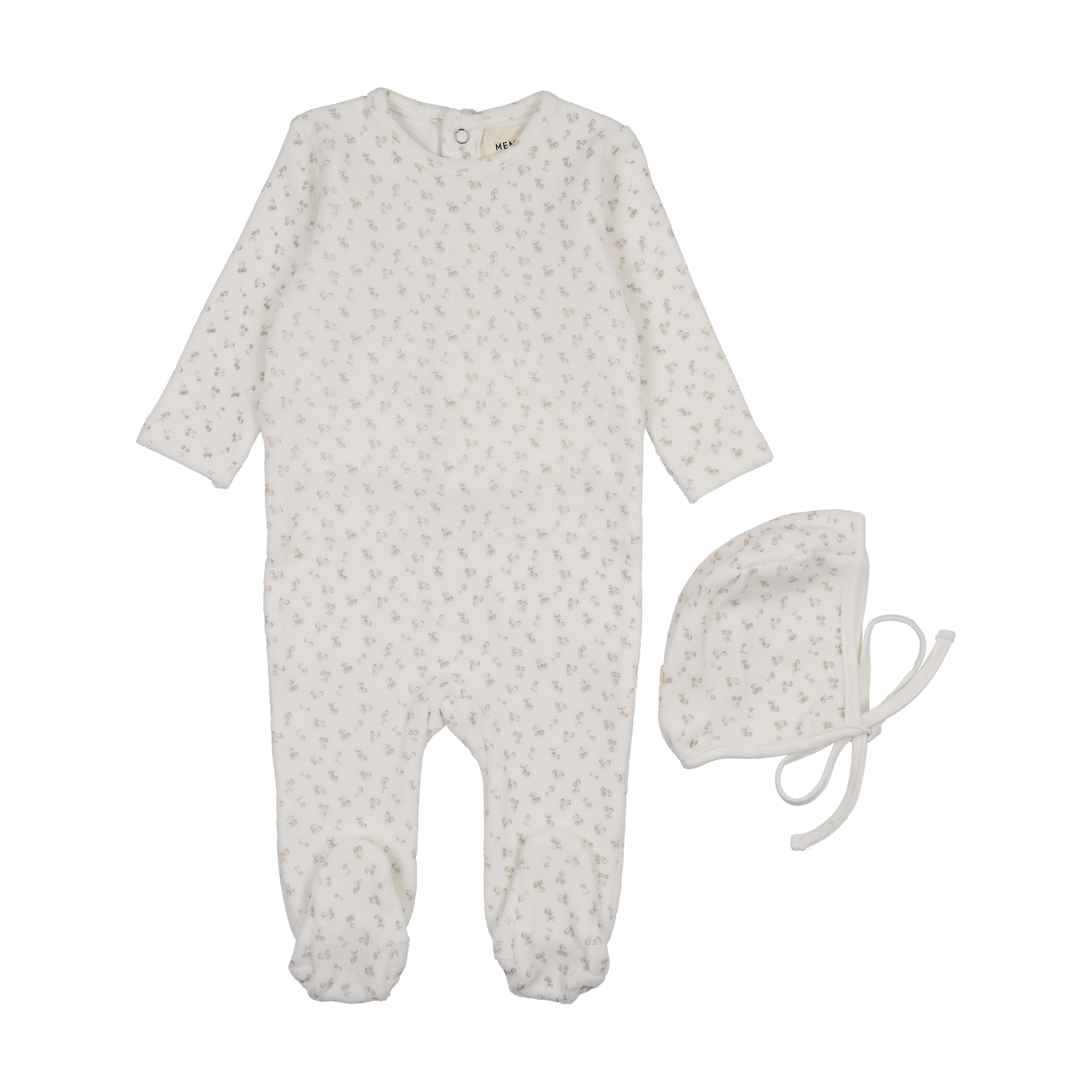 Mema Knits Pink Cherries Velour Cherry Printed Footie+ Bonnet (M402)