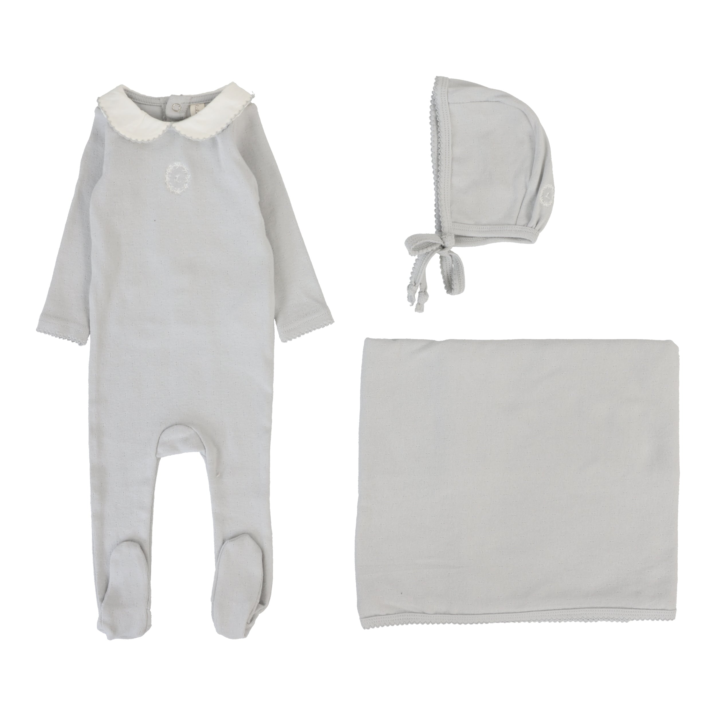 Lilette By Lil Legs Emblem Embroidered Layette Set Pale Blue