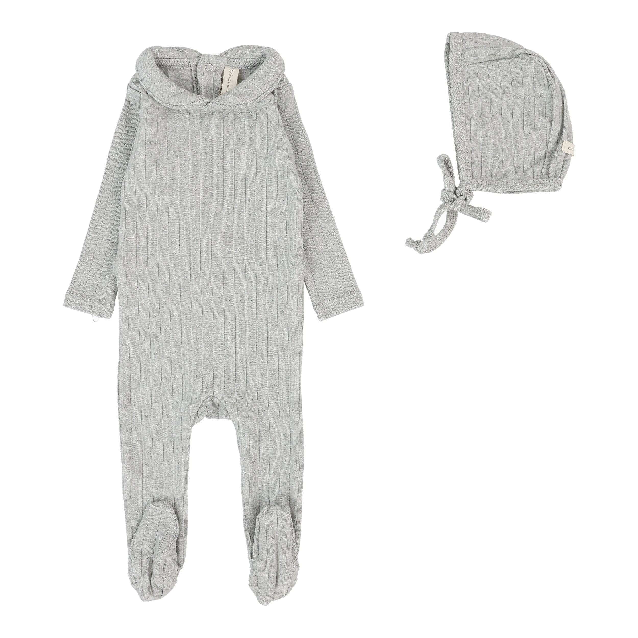 Lilette By Lil Legs Fine Pointelle Collar Footie Set Light Blue Peter Pan