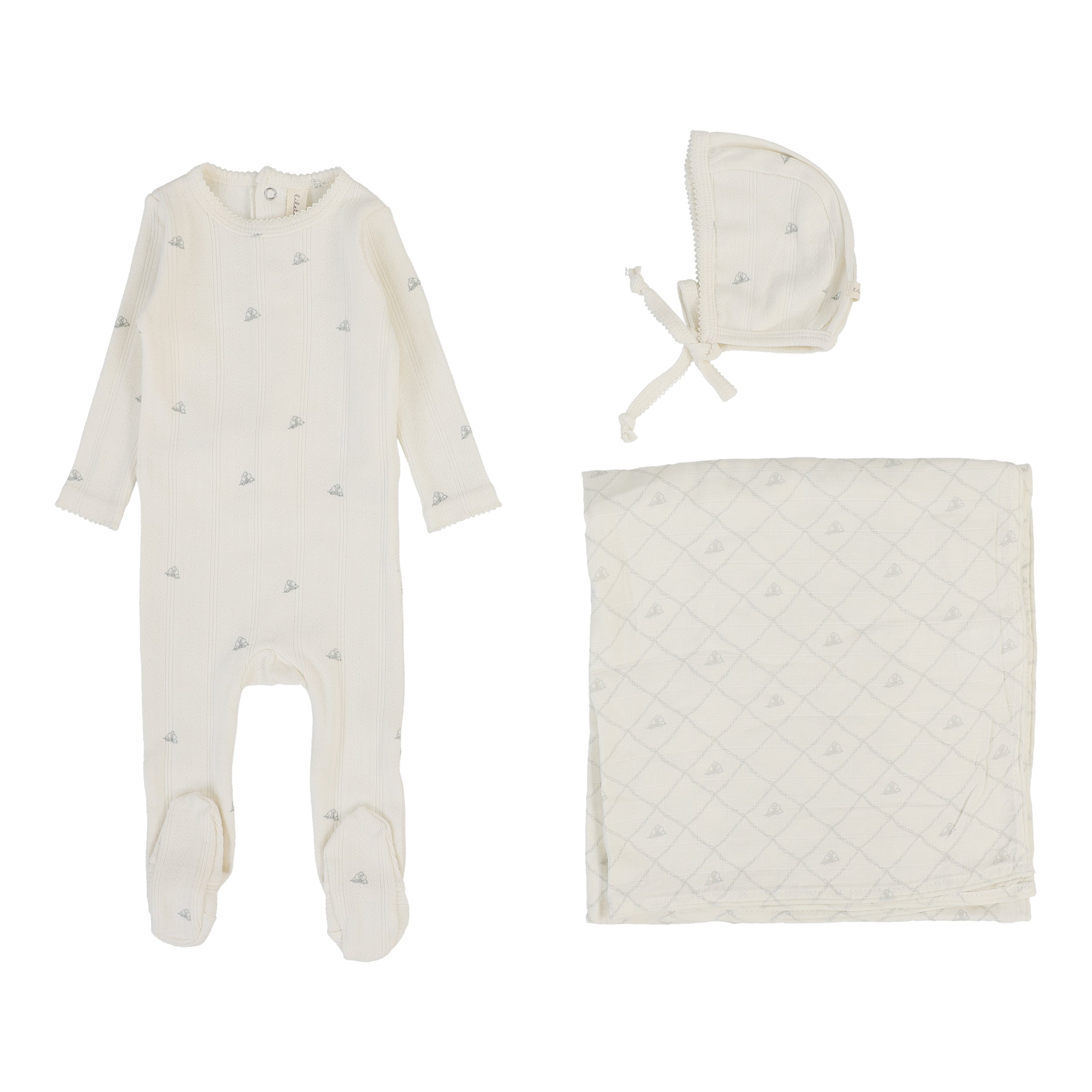 Lilette By Lil Legs Printed Pointelle Layette Set Cream/Blue Crown