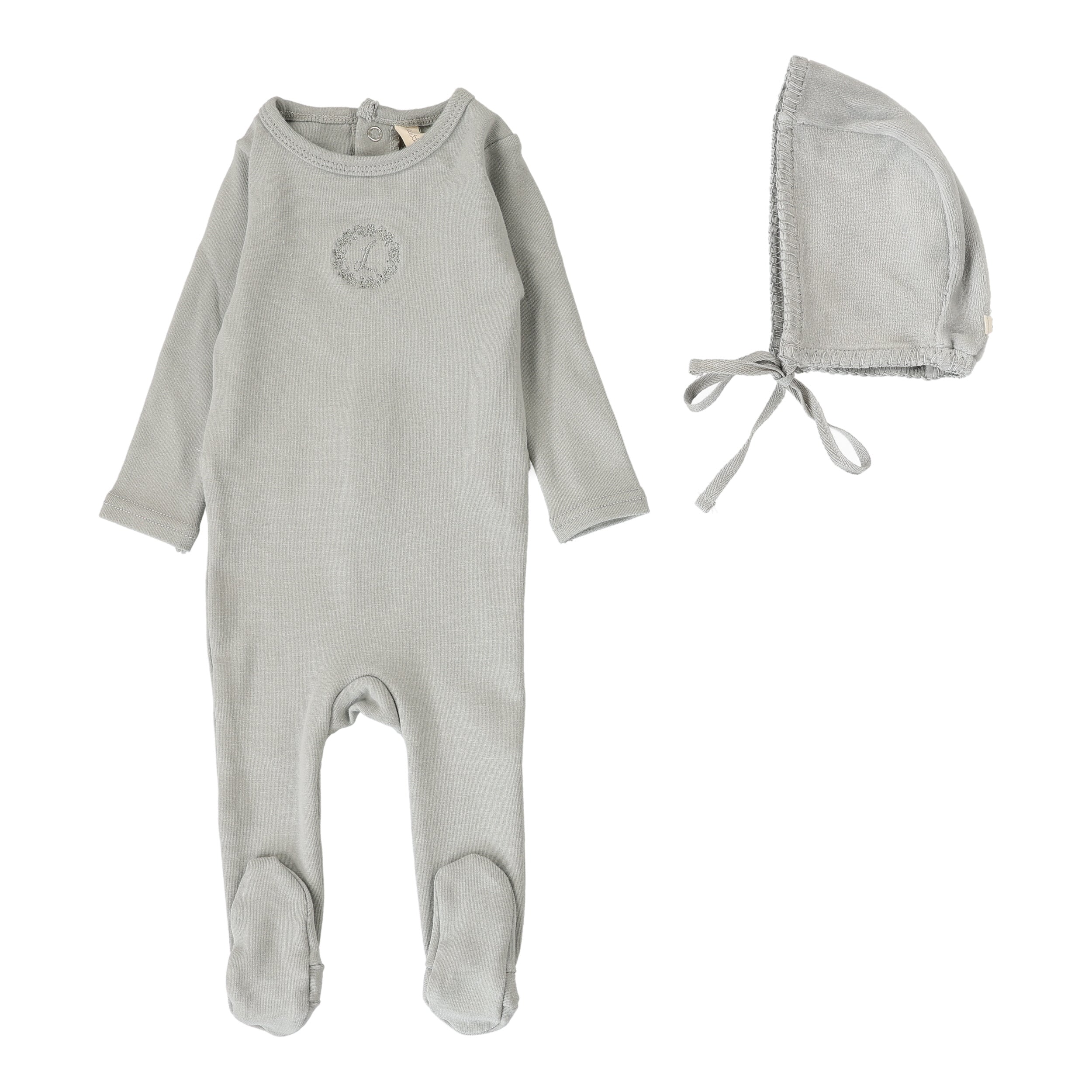 Lilette By Lil Legs Velour Cardi Footie Set Dusty Blue