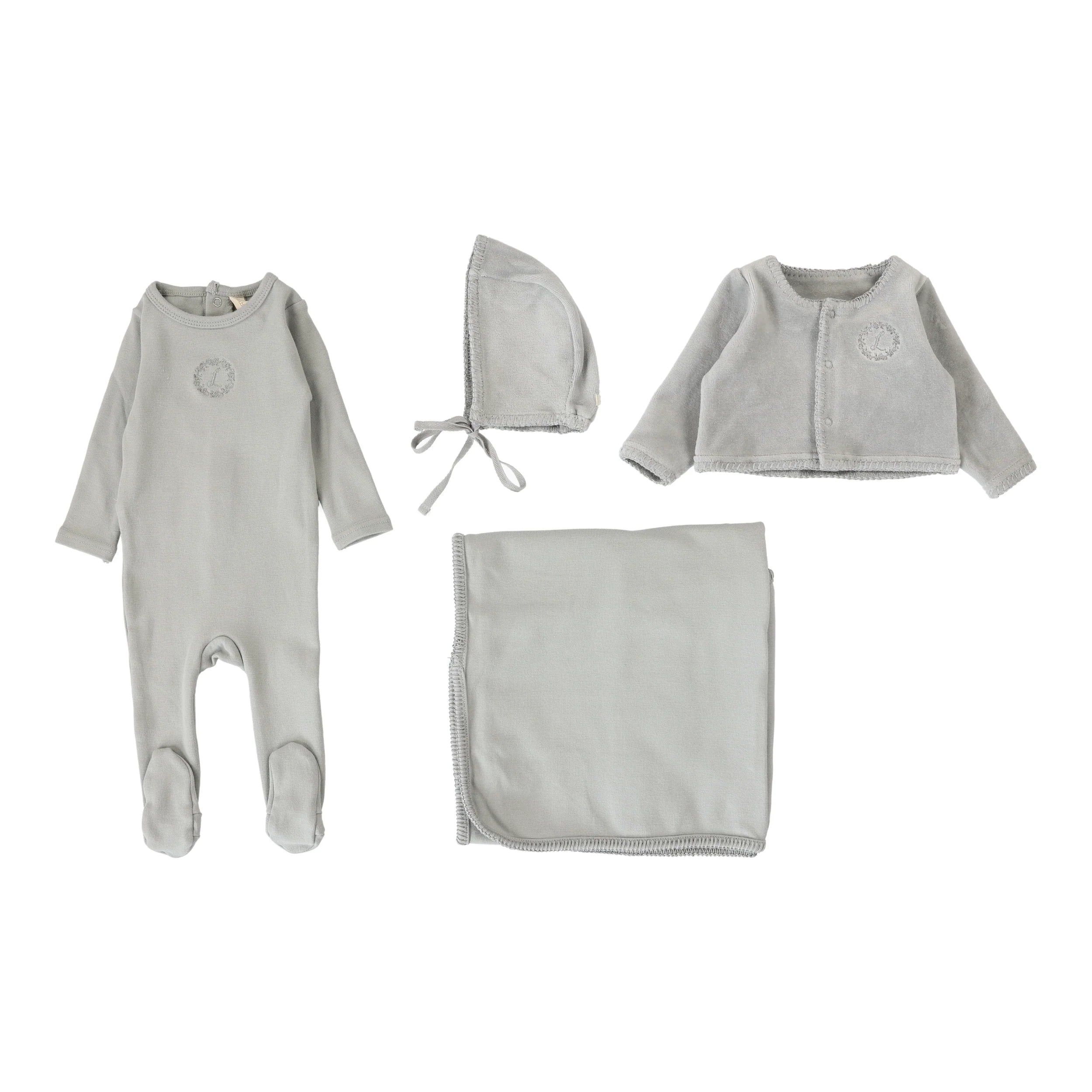 Lilette By Lil Legs Velour Cardi Layette Set Dusty Blue