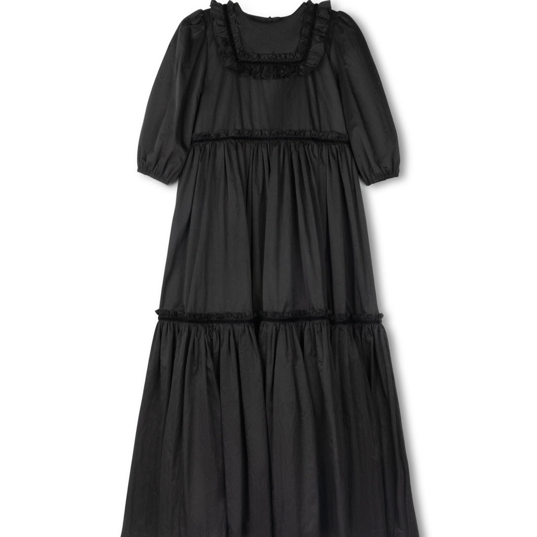 Lilou Black Taffeta Tiered Ankle Gown