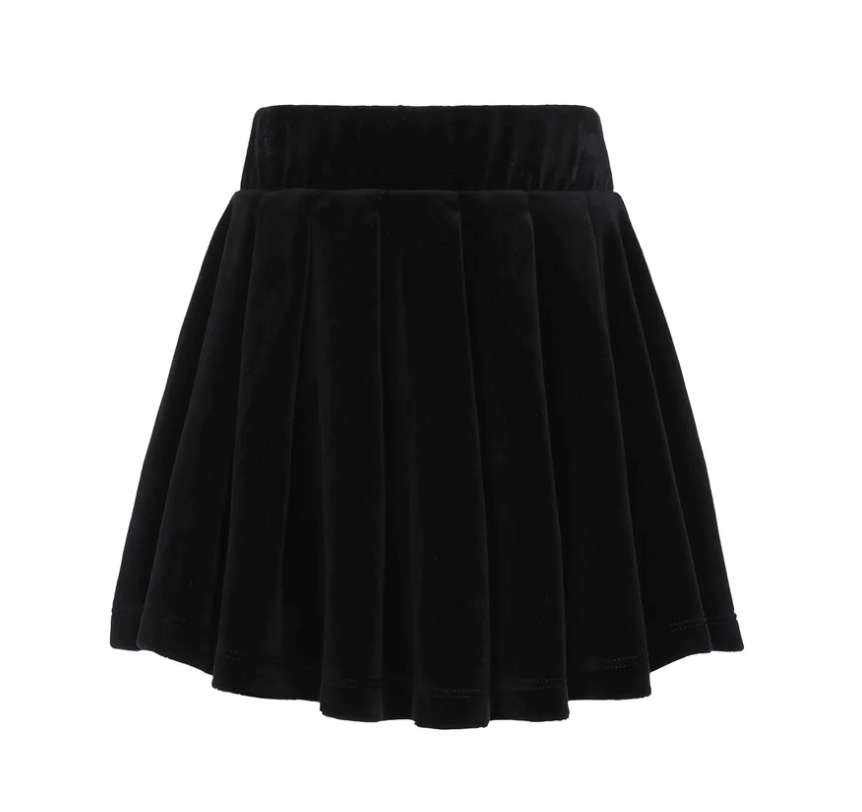 Little Parni Black Velour Pleated Skirt (K542)