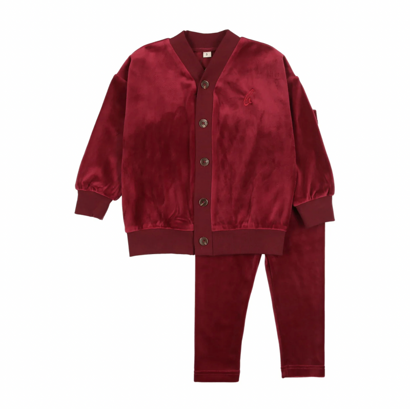 Bonjoy Burgundy Velour Cardigan Set - Burgundy