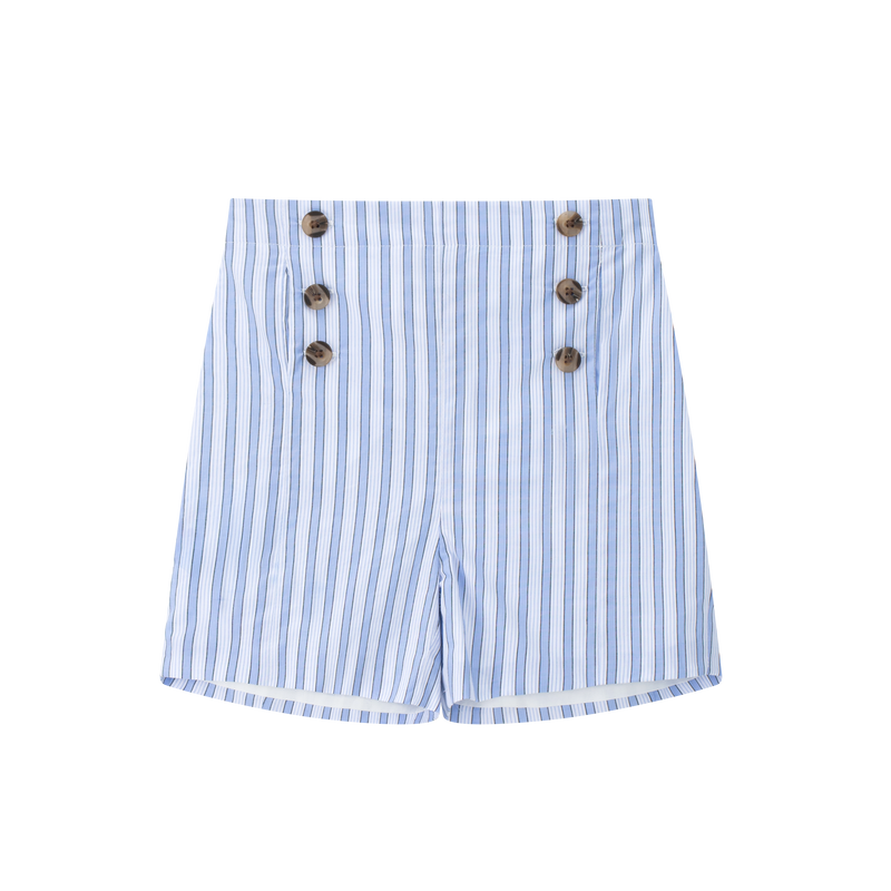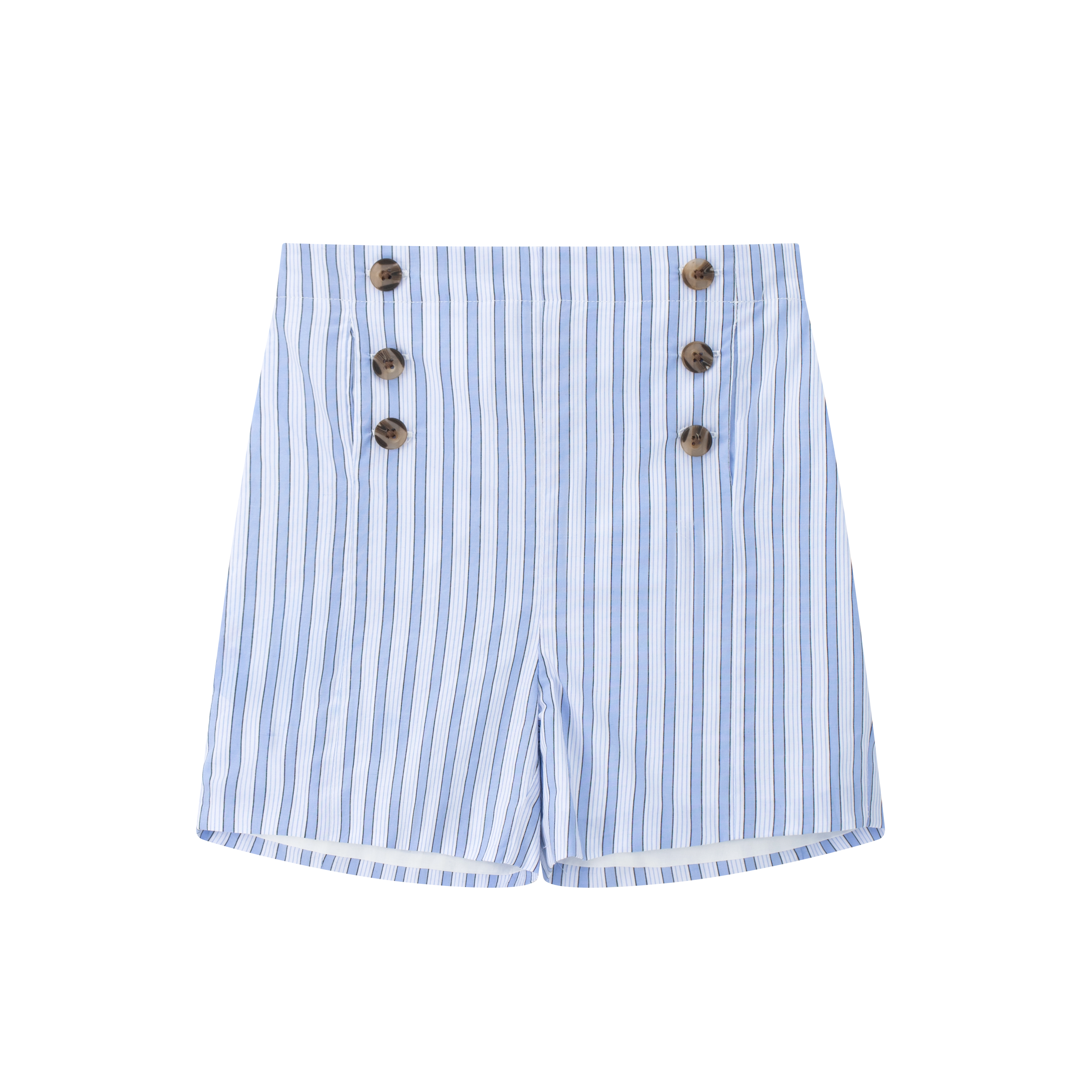 Coco Blanc Blue Striped Double Breasted Shorts SS26