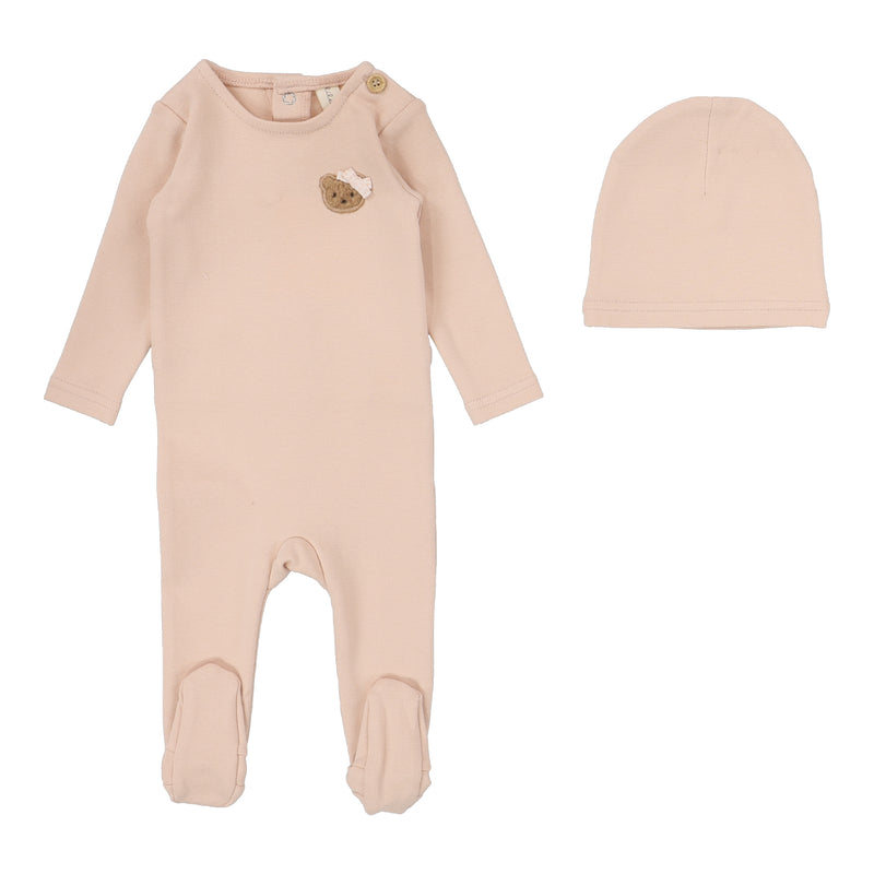Lilette By Lil Legs Bear Applique Footie Set Dusty Pink