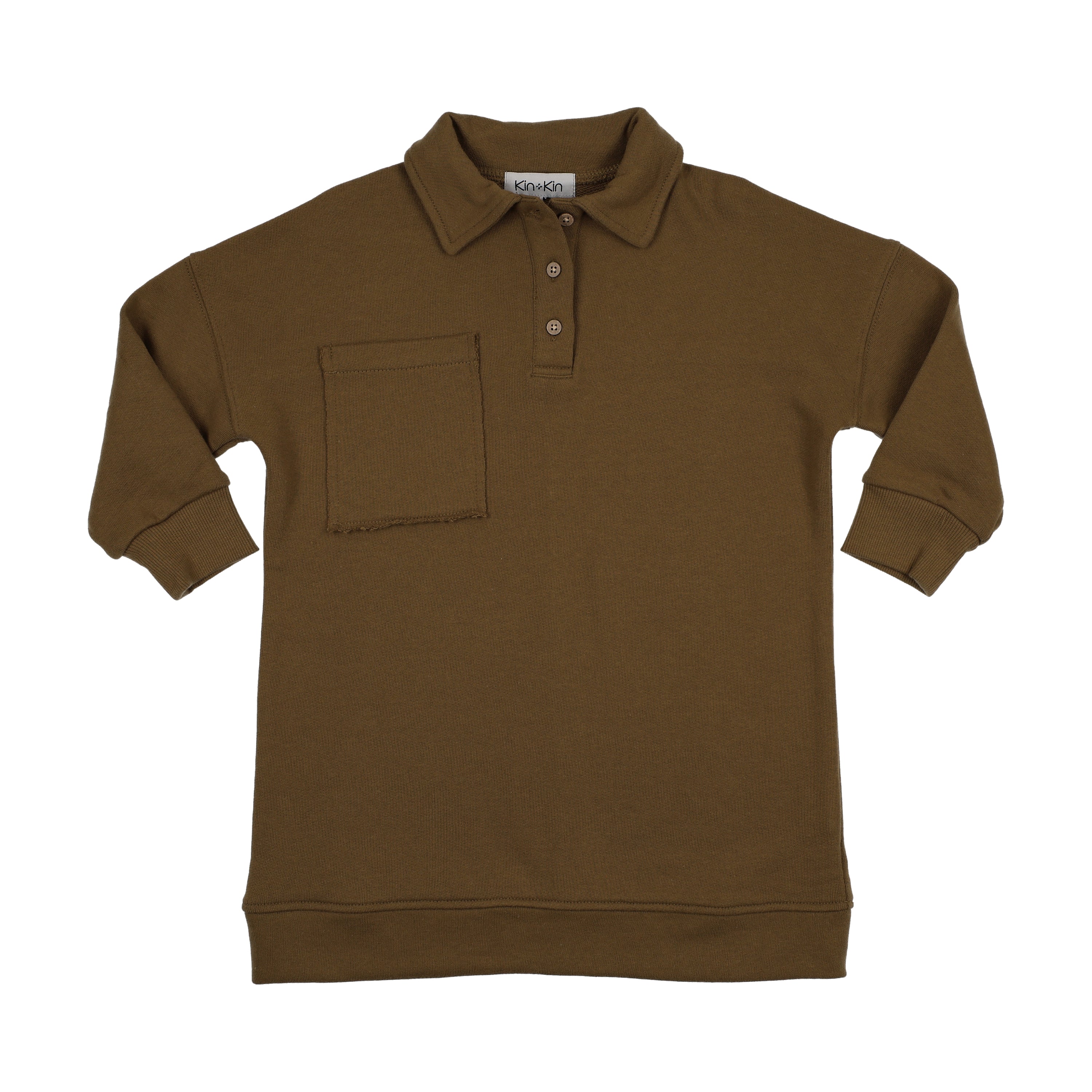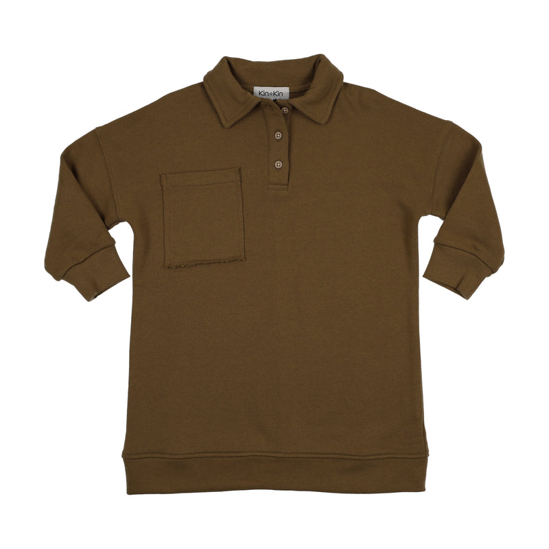 Kin And Kin Green Bronze Girls Oversized Sweatshirt Dress