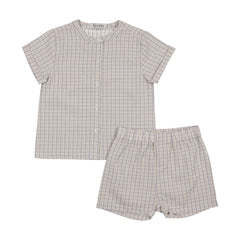 Kin And Kin Grey Plaid Baby Overall + Onesie Set