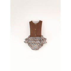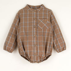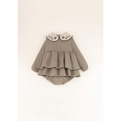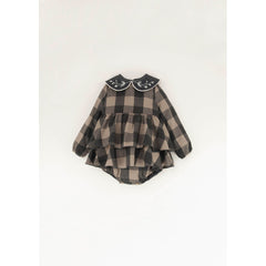 Popelin Beige Plaid Woollen Romper Suit With Frill