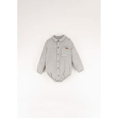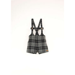 Popelin Grey Plaid Woollen Short Dungarees With Embroidery Appliqué (Mod 9.5)