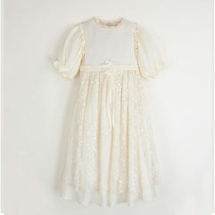 Popelin Mod 33.1 Off-white dress with triangular tulle yoke and frills
