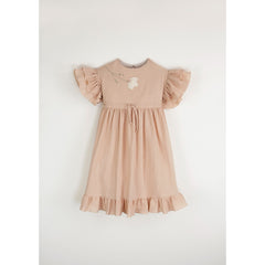 Popelin Beige Velvet Floral Dress With Yoke (Mod 41.2)