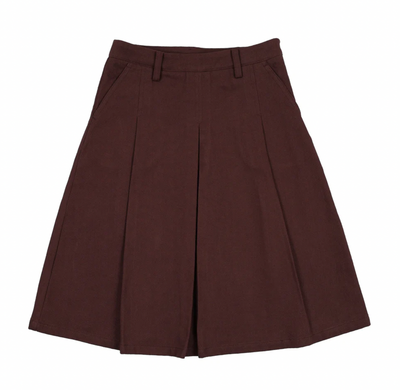 Farren And Me Washed Burgundy Denim Pleated Skirt