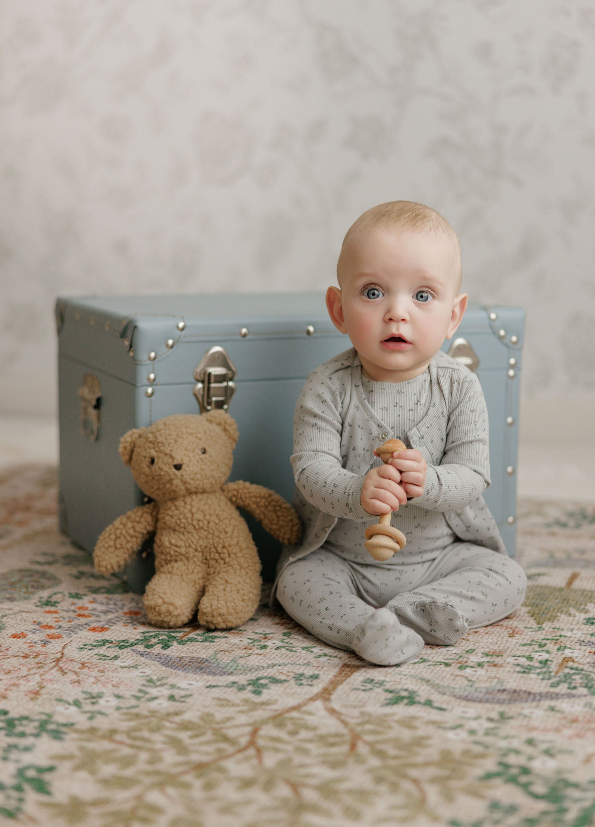 Aurora Floral Rib Collection Blue Cardigan- cardigan only