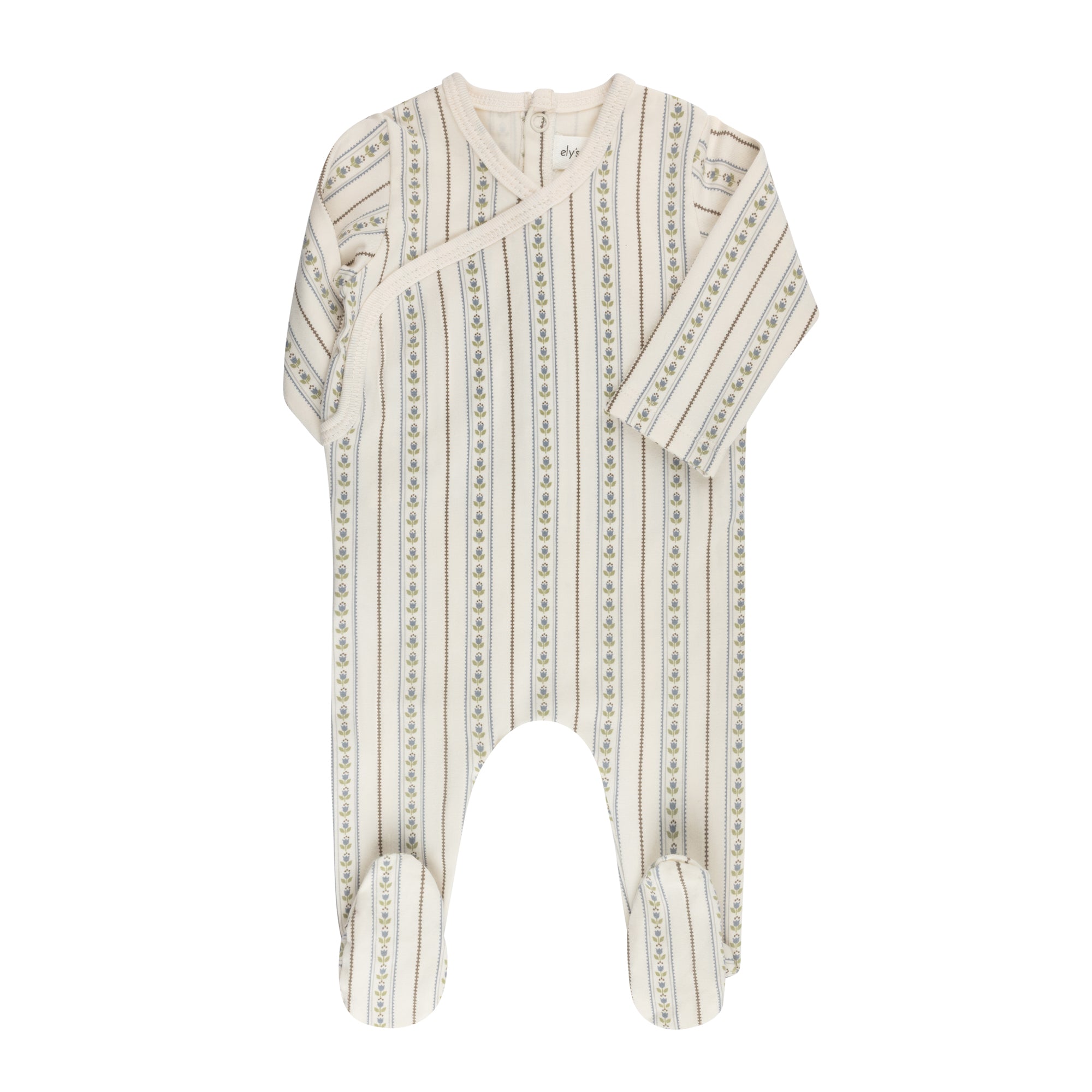 Ely's & Co Jersey Cotton Linear Tulip Ivory Blue Footie