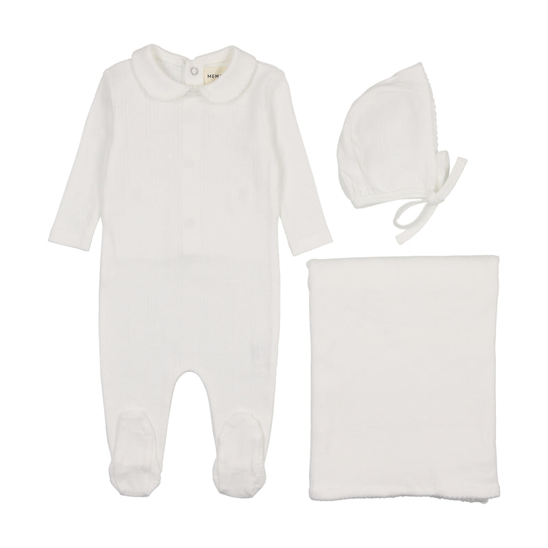 Mema Knits Winter White Pointelle three piece set (M304-3PC)